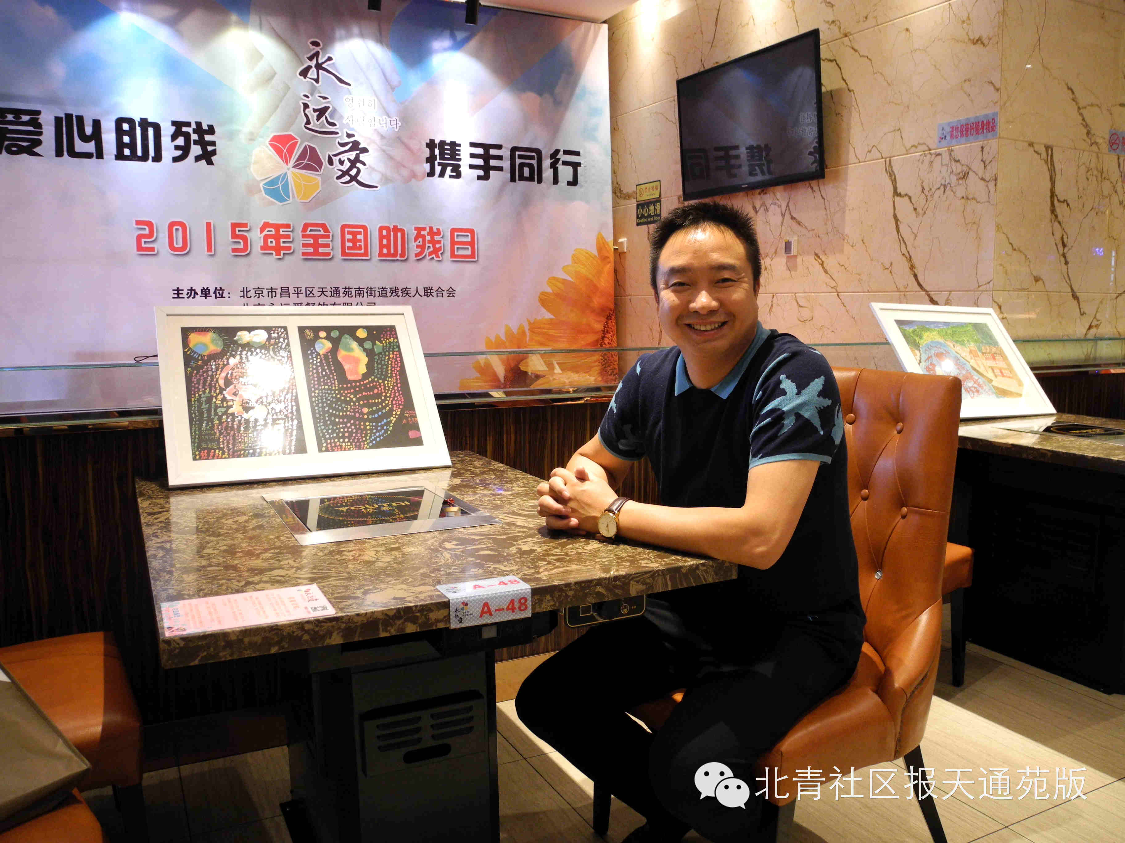 熊董事长告诉记者,“餐厅在天通苑开业至今,长期在做各种公益活动,尤其是针对老年人和残疾人等弱势群体的关爱。当我在天通苑的温馨家园看到这些残疾人的作品时,真不敢相信他们能做得这么的好!家园的老师也很不容易,不光有爱心还得有耐心。看到他们的付出,我觉得自己关爱的还不够,和家园的老师比起来还差的很多。希望能通过活动以帮助残疾学员们获得自信,创造更美好的生活。”