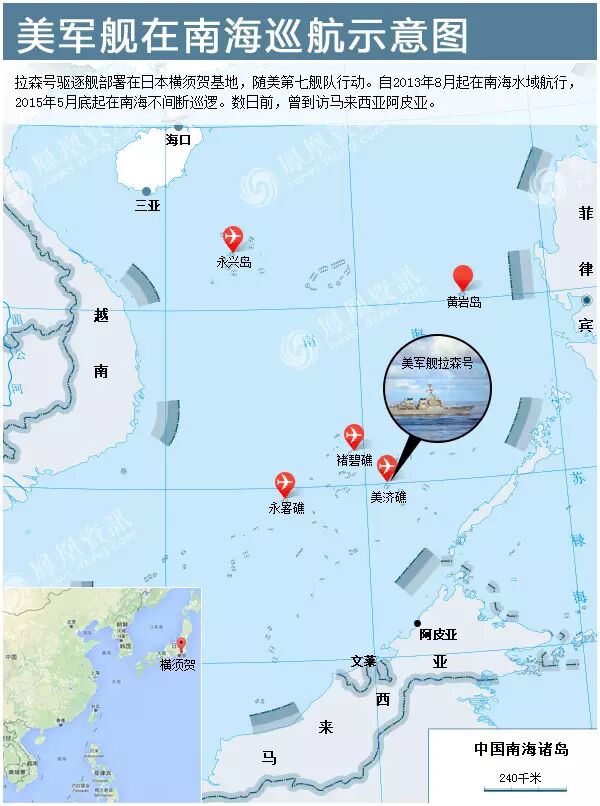 美国海军拉森号驱逐舰据进入南海中国人工岛周边12海里内